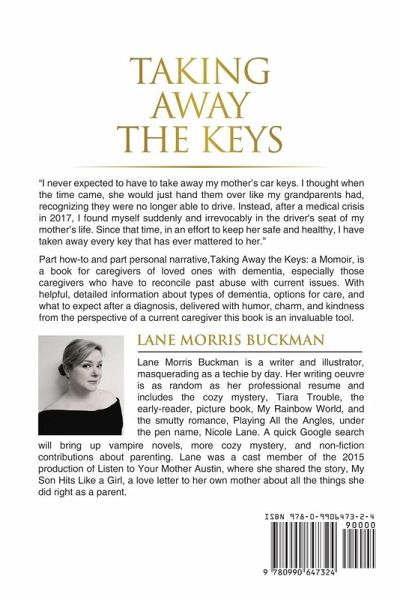 "I never expected to have to take away my mother's car keys. I thought when the time came, she would just hand them over like my grandparents had, recognizing they were no longer able to drive. Instead, after a medical crisis in 2017, I found myself suddenly and irrevocably in the driver's seat of my mother's life. Since that time, in an effort to keep her safe and healthy, I have taken away every key that has ever mattered to her." Part how-to and part personal narrative,Taking Away the Keys: a Momoir, is a book for caregivers of loved ones with dementia, especially those caregivers who have to reconcile past abuse with current issues. With helpful, detailed information about types of dementia, options for care, and what to expect after a diagnosis, delivered with humor, charm, and kindness from the perspective of a current caregiver this book is an invaluable tool.