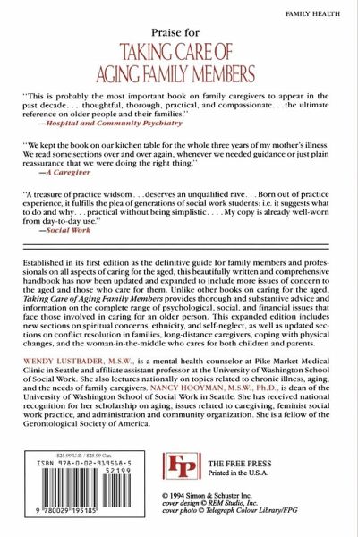 Established in its first edition as the definitive guide for family members and professionals on all aspects of caring for the aged, this beautifully written and comprehensive handbook has been updated to include more issues of concern to the aged and those who care for them. Unlike other books on caring for the aged, Taking Care of Aging Family Members provides thorough and substantive advice and information on the complete range of psychological, social, and financial issues that face those caring for an older person. This expanded edition includes new sections on spiritual concerns, ethnicity, and self-neglect, as well as updated sections on conflict resolution in families, long-distance caregivers; coping with physical changes, and the woman-in-the-middle who cares for both children and parents.
