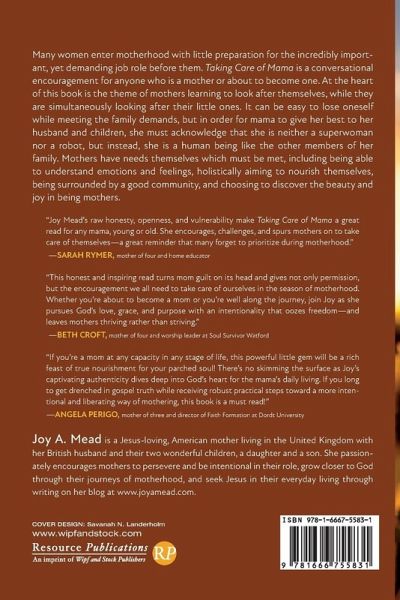 Many women enter motherhood with little preparation for the incredibly important, yet demanding job role before them. Taking Care of Mama is a conversational encouragement for anyone who is a mother or about to become one. At the heart of this book is the theme of mothers learning to look after themselves, while they are simultaneously looking after their little ones. It can be easy to lose oneself while meeting the family demands, but in order for mama to give her best to her husband and children, she must acknowledge that she is neither a superwoman nor a robot, but instead, she is a human being like the other members of her family. Mothers have needs themselves which must be met, including being able to understand emotions and feelings, holistically aiming to nourish themselves, being surrounded by a good community, and choosing to discover the beauty and joy in being mothers.