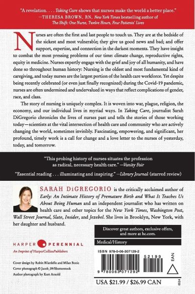 “DiGregorio’s storytelling is pitch-perfect; narrative and nursing, she understands, come from the same place and both are concerned with a deep understanding of character and plot….This is a brilliant book, and DiGregorio is a beautiful writer. Taking Care deserves to be on the reading list for nursing and medical schools, and on the bedside table of all politicians."—New York Times Book Review In this sweeping cultural history of nursing from the Stone Age to the present, the critically acclaimed author of Early pays homage to the profession and makes an urgent call for change. Nurses have always been vital to human existence. A nurse was likely there when you were born and a nurse might well be there when you die. Familiar in hospitals and doctors’ offices, these dedicated health professionals can also be found in schools, prisons, and people’s homes; at summer camps; on cruise ships, and even at NASA. Yet despite being celebrated during the Covid-19 epidemic, nurses are often undermined and undervalued in ways that reflect misogyny and racism, and that extend to their working conditions—and affect the care available to everyone. But the potential power of nursing to create a healthier, more just world endures. The story of nursing is complicated. It is woven into war, plague, religion, the economy, and our individual lives in myriad ways. In Taking Care, journalist Sarah DiGregorio chronicles the lives of nurses past and tells the stories of those today—caregivers at the vital intersection of health care and community who are actively changing the world, often invisibly. An absorbing and empathetic work that combines storytelling with nuanced reporting, Taking Care examines how we have always tried to care for each other—the incredible ways we have succeeded and the ways in which we have failed. Fascinating, empowering and significant, it is a call for change and a love letter to the nurses of yesterday, today, and tomorrow.