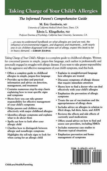 The number of children with allergies is astounding-nearly one child in six is said to suffer from some sort of allergy. The problems of these allergic children can be as mild as occasional attacks of hay fever or as severe as disfiguring eczema and life-threatening bronchial asthma. In addition to the obvious health problems associated with having allergies, affected children may experience recurring colds, painful ear infections, and other allergy linked conditions, all of which cause frequent school absences. Childhood allergies affect school performance adversely; they may be instrumental in reducing attention span, and they are certainly a major social, psychologi cal, and financial burden for children and their parents. This book is a complete guide to childhood allergies presented in simple jargon-free language. It provides parents with comprehensive, up-to-date, and practical information and advice on how to help their allergic children. It identifies the many allergic symptoms, tells what they look like, how prevalent they are, what causes them, and what to do about them. It outlines steps parents can take to help their children understand, manage, and control their allergies. Its goal is to help parents and children cope effectively with a major childhood problem.