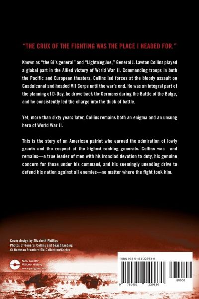 "The crux of the fighting was the place I headed for." -General J. Lawton Collins Known as "the GI's general" and "Lightning Joe," General J. Lawton Collins played no less than a global part in the Allied victory of World War II. Here, for the first time, is the story of an American hero and patriot- a man who earned the admiration of the grunts with whom he shared foxholes and the respect of the highest-ranking generals. Collins was a true leader of men with his iron-clad devotion to duty, his genuine concern for those under his command, and his seemingly unending drive to defend his nation against all enemies-no matter where the fight took him...