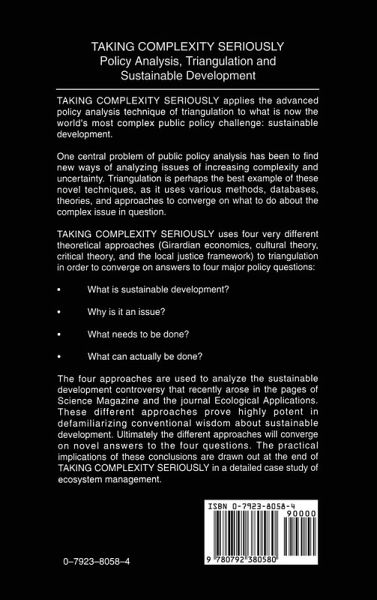 Taking Complexity Seriously applies the advanced policy analysis technique of triangulation to what is now the world's most complex public policy challenge: sustainable development.