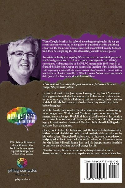 In this third book in the Journey's of Courage series, Brock Matheson's family grows through the life changes beset by his 'coming out' as a gay young man. While still defining their new normal, family members and their friends find themselves in situations they could never have imagined before. New discoveries, different perspectives, changed attitudes, and a determination to conquer fears, help many of them to take control of their own lives.