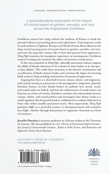 Caribbean women have long utilized the medium of fiction to break the pervasive silence surrounding abuse and exploitation. Contemporary works by such authors as Tiphanie Yanique and Nicole Dennis-Benn illustrate the deep-rooted consequences of trauma based on gender, sexuality, and race, and trace the steps that women take to find safer ground from oppression. Taking Flight examines the immigrant experience in contemporary Caribbean women's writing and considers the effects of restrictive social mores. In the texts examined in Taking Flight, culturally sanctioned violence impacts the ability of female characters to be at home in their bodies or in the spaces they inhabit. The works draw attention to the historic racialization and sexualization of black women's bodies and continue the legacy of narrating black women's long-standing contestation of systems of oppression. Arguing that there is a clear link between trauma, shame, and migration, with trauma serving as a precursor to the protagonists' emigration, Jennifer Donahue focuses on how female bodies are policed; how moral, racial, and sexual codes are linked; and how the enforcement of social norms can function as a form of trauma. Donahue considers the relationship between trauma, shame, and sexual politics and investigates how shame works as a social regulator that frequently leads to withdrawal or avoidant behaviors in those who violate socially sanctioned mores. Most importantly, Taking Flight positions flight as a powerful counter to disempowerment and considers how flight, whether through dissociation or migration, functions as a form of resistance.