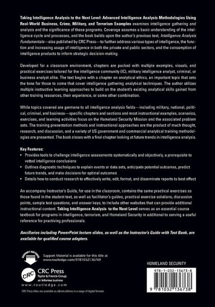 1: Analytical Ethics 2: CARVER and Other Criticality and Vulnerability Assessments 3: Target-Focused Analysis 4: Alternatives Analysis 5: Challenging Assumptions 6: Applications of Modeling in Analysis 7: Challenging the Assessment 8: Futures Analysis 9: Threat Finance 10: Open-Source Intelligence 11: Activity-Based Intelligence 12: Trends in Intelligence Analysis