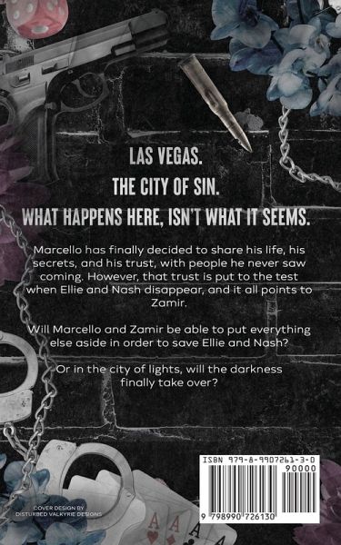 Las Vegas The City of Sin What happens here, isn't what it seems. Marcello has finally decided to share his life, his secrets, and his trust, with people he never saw coming. However, that trust is put to the test when Ellie and Nash disappear, and it all points to Zamir. Will Marcello and Zamir be able to put everything else aside in order to save Ellie and Nash? Or in the city of lights, will the darkness finally take over? **A dark why choose romance. This book is only meant for an 18+ audience. Please read the content and trigger warnings on my website.