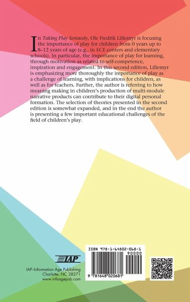 In the book, the author is focusing the importance of play for children from 0 years up to 8-12 years of age, e.g. in ECE centers and elementary schools. In particular, the importance of play for learning, through motivation as related to self-competence, inspiration and engagement. In this second edition, the author is emphasizing more thoroughly the importance of play as a challenge of learning, with implications for children, as well as for teachers. Further, the author is referring to how meaning making in children's production of multi-module narrative products can contribute to their digital personal formation. The selection of theories presented in the second edition is somewhat expanded, and in the end the author is presenting a few important educational challenges of the field of children's play.