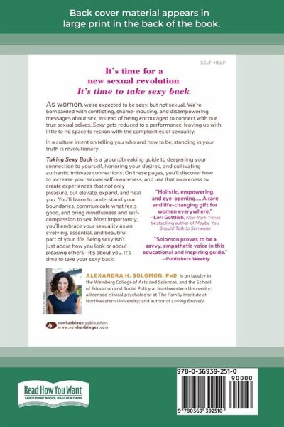 For women, sex has been hijacked. Today's sexual climate leaves little to no space for honoring the complexities of sex-sex as pleasure, sex as connection, sex as creative expression, and sex as healing. In Taking Sexy Back, relationship expert Alexandra Solomon shows women that they are more than just sexy objects of someone else's desire, and offers real tools to help women explore their own sexuality, communicate their needs, draw boundaries to be safe, and build the satisfying relationships they truly want.