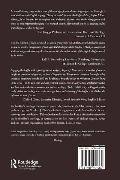 Bonhoeffer's theology continues to prove richly fruitful in the 21st century. This book gathers together Stephen Plant's scholarly engagement with Bonhoeffer's life and theology over two decades. This collection makes accessible distinctive perspective on Bonhoeffer's theology, in particular on the key themes of biblical hermeneutics, ethics.