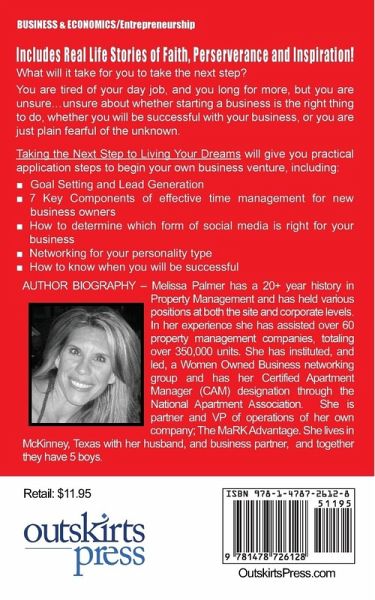 You sit at your desk job, or work tirelessly at your food service or retail job, and daydream about what it would be like to have your own business; to be your own boss. You wonder what it would be like to have the kind of time and freedom to set your own schedule, to be able to spend more time with your kids or your significant other. In Taking the Next Step to Living Your Dreams, you will learn what it takes to make that next step beneficial. Hearing first-hand accounts of other women just like you, who have gone before you, will show you that you can do it too! In this book, you will learn practical application steps to begin your own business venture: Goal Setting and Lead Generation, 7 Key Components of effective time management for business owners, How to determine which Social Media outlet is best for your business, Networking for your personality type, How to measure your success. What this book is not: Legal advice on how to form a company, How to write a business plan, Fluff about how having your own business solves all your problems. There are plenty of other resources available on those key components, well at least two of them. The goal in writing this book was to share inspirational stories that will motivate other women, who desire freedom and time, to take the next step of faith. The bottom line is that having your own business won't solve all your problems, but it can give you opportunities that you have never had before. This book includes 5 case studies from women just like you, who took that step and made something happen. Each of these women overcame fears, obstacles, health issues, even homelessness, and persevered on to become the great business owners and leaders they are today. Whether you are a single woman, divorced or married, these are stories you will relate to. After each chapter, you will have the opportunity to answer some key questions about your particular situation. How you answer these questions, will give insight into what you