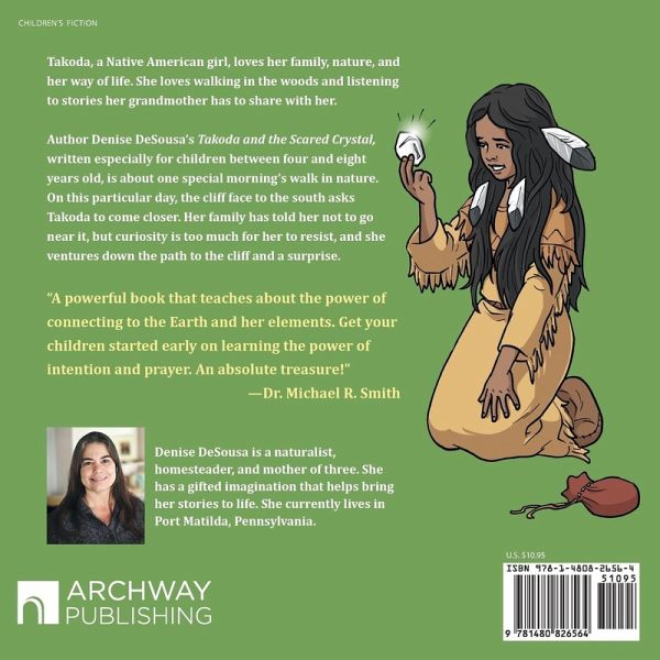 Takoda, a Native American girl, loves her family, nature, and her way of life. She loves walking in the woods and listening to stories her grandmother has to share with her. Author Denise DeSousa's Takoda and the Scared Crystal, written especially for children between four and eight years old, is about one special morning's walk in nature. On this particular day, the cliff face to the south asks Takoda to come closer. Her family has told her not to go near it, but curiosity is too much for her to resist, and she ventures down the path to the cliff and a surprise. "A powerful book that teaches about the power of connecting to the Earth and her elements. Get your children started early on learning the power of intention and prayer. An absolute treasure!" -Dr. Michael R. Smith