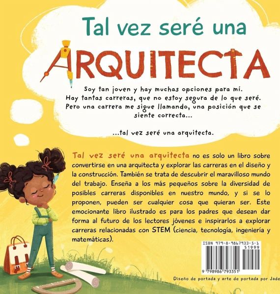 Ideal para estudiantes de doble inmersión de 3 a 7 años. Compre ambas versiones y compare para ayudar a los estudiantes a mejorar sus habilidades en español e inglés. ¿Está buscando un libro infantil divertido y atractivo que inspire la imaginación de su hijo y lo ayude a explorar la idea de lo que podría querer ser cuando crezca (más allá de ser una persona influyente en las redes sociales)? Escrita de forma lírica con ilustraciones coloridas, divertidas y llenas de energía, Quizás seré arquitecto es una historia sobre el maravilloso mundo del trabajo y sobre cómo puedes ser lo que quieras ser, tal vez incluso un arquitecto. Tal vez seré una arquitecta no es solo un libro sobre convertirse en una arquitecta y explorar las carreras en el diseño y la construcción. También se trata de descubrir el maravilloso mundo del trabajo. Enseña a los más pequeños sobre la diversidad de posibles carreras disponibles en nuestro mundo, y si se lo proponen, pueden ser cualquier cosa que quieran ser. Este emocionante libro ilustrado es para los padres que desean dar forma al futuro de sus pequeños lectores e inspirarlos a explorar carreras relacionadas con STEM (ciencia, tecnología, ingeniería y matemáticas). "Lo que me encantó de este libro para niños es el entusiasmo por el conocimiento, la forma en que el trabajo duro, la motivación y el deseo de superación son primordiales en sus proyectos. Los mensajes son claros y deben compartirse con todos los niños pequeños". - Marie-Hélène Fasquel (Reseña del libro favorito de los lectores) ¿ English version: Maybe I'll be an Architect ¿ Great for Dual Immersion Students ages 3-7 Buy both versions and compare to help students improve their Spanish and English skills. Looking for a fun and engaging children's book that will inspire your child's imagination and help them explore the idea of what they might want to be when they grow up (beyond being a social media influencer)? Written lyrically with colorful, fun, energetic illustrations, Maybe I'll be an Architect is a story about the wonderful world of work and that you can be whatever you want to be, maybe even an architect. Not just a book about becoming an architect and exploring careers in design and construction, it teaches little ones about the diversity of possible careers available in our world. And if they put their minds to it, they can be anything they want to be. This exciting picture book is for parents who wish shape the future for young readers and inspire them to explore STEM (science, technology, engineering and mathematic) related careers. "What I loved about this children's book is the enthusiasm for knowledge, the way hard work, motivation, and the desire to excel are paramount to her projects. The messages are clear and should be shared with all small children." - Marie-Hélène Fasquel (Reader's Favorite Book Review)