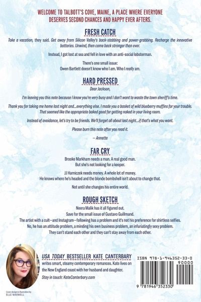 Welcome to Talbott's Cove, Maine, a place where everyone deserves second chances and happy ever afters. Included in this collection: Fresh Catch Take a vacation, they said. Get away from Silicon Valley's back-stabbing and power-grabbing. Recharge the innovative batteries. Unwind, then come back stronger than ever. Instead, I got lost at sea and fell in love with an anti-social lobsterman. There's one small issue: Owen Bartlett doesn't know who I am. Who I really am. *** I don't like people. I avoid small talk and socializing, and I kick my companions out of bed before the sun rises. No strings, no promises, no problems. Until Cole McClish's boat drifts into Talbott's Cove, and I bend all my rules for the sexy sailor. I don't know Cole's story or what he's running from, but one thing is certain: I'm not letting him run away from me. Hard Pressed Dear Jackson, I'm leaving you this note because I know you're very busy and I don't want to waste the town sheriff's time. Lord knows I've already wasted enough of it. Thank you for taking me home last night and...everything else. I made you a basket of wild blueberry muffins for your trouble. That seemed like the appropriate baked good for getting naked in your living room. I wasn't myself last night. I didn't mean to kiss you or fondle your backside or ask all those intimate questions. Thank you for pretending to enjoy it. It was very noble of you to sleep on the couch while I was starfished on your bed. I couldn't help but notice it's quite large. The bed, that is. I swear, I didn't notice anything else when I let myself out this morning. As you know, Talbott's Cove is a ridiculously small town and there's no chance we can avoid each other. Not that I'd want to avoid you, of course, but I'm not sure I can look at you without thinking of the forty different ways I made a fool of myself. Instead of avoidance, let's try to be friends. We'll forget all about last night...if that's what you want. Please burn this note after you read it- Annette p.s. I whipped up some cinnamon buns, too. Please enjoy them. I'm not sure why, but I couldn't get buns out of my mind today. Far Cry Brooke Markham needs a man. A real good man. But she's not looking for a keeper. She's too busy kicking ass, running an empire, and caring for her ailing father to spend time with men who want annoying things like relationships and commitment and...conversation. Brooke knows what she wants and it's not a future with the growly barkeep. JJ Harniczek needs money. A whole lot of money. He's determined to launch his distillery, expand his tavern, and put Talbott's Cove on the foodie tourism map. But there's no way he's asking Brooke for a dime. Not before he takes her to bed and definitely not after. JJ knows where he's headed and the blonde bombshell isn't about to change that. Not until she changes his entire world. Rough Sketch Smart, successful, and sitting pretty at the top of her game, Neera Malik has it all figured out. Save for the small issue of Gustavo Guillmand. The artist with a cult-and Instagram-following has a problem and it's not his preference for shirtless selfies. No, he has an attitude problem, a minding his own business problem, an infuriatingly sexy problem. They can't stand each other and they can't stay away from each other.