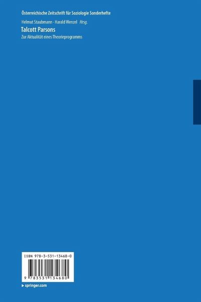 Zur Würdigung Parsons'.- Talcott Parsons "revisited".- Talcott Parsons - Mein Lehrer.- Konvergenzen - Divergenzen.- Das Konvergenzproblem in den europäischen Sozialwissenschaften an der Wende zum 20. Jahrhundert.- Convergence as Method in Theory Construction.- Über den hierarchischen Aufbau der Welt. Talcott Parsons' und Karl Poppers Theorien im Vergleich.- Talcott Parsons und die formale Soziologie.- Parsons Reads Durkheim.- Bausteine der Theorie des Handelns.- Theorie als "theoretisches System". Parsons' Beitrag zur soziologischen Theorie.- The Critique of Utilitarianism in Structure and Gorgias.- Zum Verhältnis von funktionaler, kausaler und historischer Erklärung bei Parsons. Eine kritische Betrachtung.- Scarcity of Means and Solidarity of Values. The Theory of Social Action in Talcott Parsons' General Sociology.- Anwendungen der Theorie des Handelns.- Talcott Parsons' Kulturkonzept. Ein Zugang zum besseren Verständnis der Transformationsprozesse in Europa?.- The Body, Expressive Culture and Social Interaction. Integrating Art History and Action Theory.