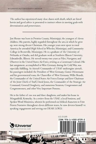The author has experienced many close shaves with death, which are listed herein and good advice is presented to instruct others in meeting goals with determination and perseverance.