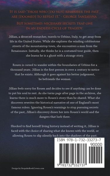 It is said those who do not remember the past are doomed to repeat it. But sometimes necessary secrets trap one in an endless cycle of tragedy. Jillian, a divorced researcher, travels to Urbino, Italy, to get away from life in the United States. While she explores the winding cobblestone streets of the mountaintop town, she encounters a man from the Renaissance. Initially, she thinks he is a costumed tour guide, then she learns he is a ghost with a strange story. Rouen is cursed to wander within the boundaries of Urbino for a thousand years. Jillian is the first person in over a century to notice that he exists. Although it goes against his better judgement, he befriends the woman. Jillian feels sorry for Rouen and decides to see if anything can be done to put his soul to rest. As she turns page after page in the archives, she learns there is much more to Rouen's story than he shared. What she discovers rewrites the historical narrative of one of England's most famous rulers. Ignoring Rouen's warnings to stop pursuing secrets of the past, Jillian's discovery draws her into Rouen's world and the dangers that lurk there. Shocked to find herself living history instead of writing it, Jillian is faced with the choice of sharing what she knows with the world, or allowing Rouen to slip silently back into the shadows of the past.