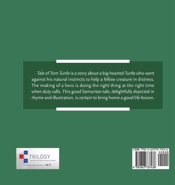 Tale of Tom Turtle is a story about a big-hearted Turtle who went against his natural instincts to help a fellow creature in distress. The making of a hero is doing the right thing at the right time when duty calls. This good Samaritan tale, delightfully depicted in rhyme and illustration, is certain to bring home a good life lesson.