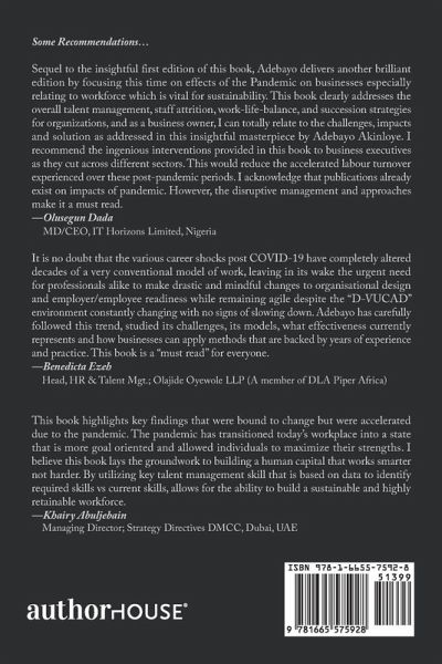 The experiences of COVID-19 and the resulting disruptions on a global scale triggered new dimensions in the world of work. Several businesses are yet to recover from the effects of the pandemic; operationally and economically. Beyond these economic implications, there has been an enormous impact on individual careers and career transitions. Many employees suffered mental illness, career shocks, while others have ventured into careers they would not have previously considered but for the effects of the pandemic and their options to manage these effects. COVID-19 has prompted several reconsiderations not only in the ways we now define ""work"", ""workforce"" and ""workplace""but also in terms of how businesses operate and where businesses and employees operate from. Additionally, other key related trends namely, the '"Great Resignation"' and '"Quiet Quitting"' with other patterns have subsequently emerged. These trends and their impacts on talent management cannot be overemphasised. It does seem that the "workplace powers" have shifted to the employees as they now try to redefine what an ideal work and workplace should look like. Again, "compound talents" seem to be dictating/influencing the structure of contracts in organisations and, this determines what contract/s they are willing to enter considering their skills set. The disruption has influenced certain outcomes including, the immersive adoption of the use of technology, necessity for skills upgrade and the positive embrace of flexible work arrangements. There is an emergence of "uncommon leaders; leaders who ordinarily, would not have come on the scene if things were normal. Consequently, this book presents detailed insights into key trends that have now emerged in the new world of work. The author draws on experience and research in guiding business leaders, professionals and talent custodians on theories, methodologies, and tools that can be applied in dealing with these emerging talent management trends.