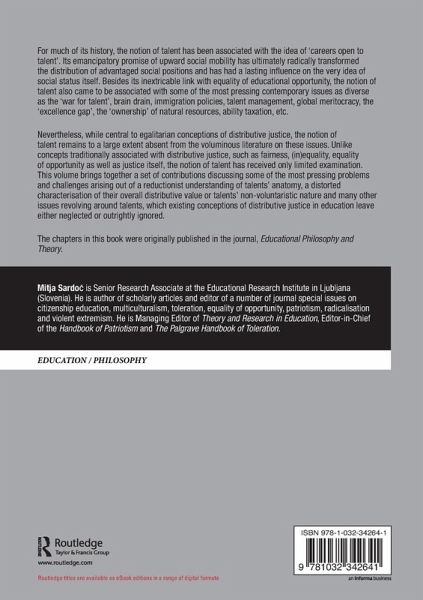 1. Introduction 2. Talents and distributive justice: some tensions 3. Two conceptions of talent 4. Against selection: Educational justice and the ascription of talent 5. Talents abilities and educational justice 6. Earning rent with your talent: Modern-day inequality rests on the power to define transfer and institutionalize talent 7. The belief in innate talent and its implications for distributive justice 8. A limited defense of talent as a criterion for access to educational opportunities 9. China's making and governing of educational subjects as 'talent': A dialogue with Michel Foucault 10. Talents and distributive justice: An interview with Hillel Steiner