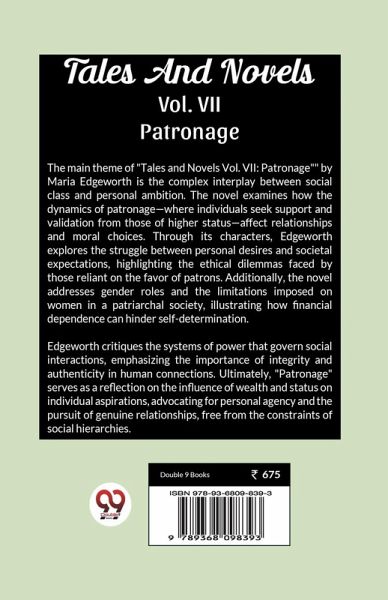 The main theme of ""Tales and Novels Vol. VII: Patronage"" by Maria Edgeworth is the complex interplay between social class and personal ambition. The novel examines how the dynamics of patronage-where individuals seek support and validation from those of higher status-affect relationships and moral choices. Through its characters, Edgeworth explores the struggle between personal desires and societal expectations, highlighting the ethical dilemmas faced by those reliant on the favor of patrons. Additionally, the novel addresses gender roles and the limitations imposed on women in a patriarchal…mehr