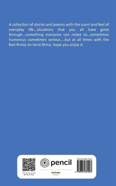 A collection of stories and poems with the scent and feel of everyday life...situations that you all have gone through...something everyone can relate to...sometimes humorous sometimes serious....but at all times with the feet firmly on terra firma..hope you enjoy it
