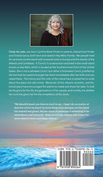 The island of Key West located on the Southernmost Point of the United States has always been a place known for its uniqueness and mystery. Many people that don't know the island, perhaps, believe it is a place to just have fun, relax, and go on vacation - but the small island has and always has had so much more to give. It is a very nurturing place where real families live and thrive. This is well known to the writer because it was where she grew up. These island stories are inspired by the lives and struggles of those she loved, her ancestors, and sometimes her own life. Many of the characters are larger than life and perhaps unimaginable, but such is the essence of the people who have lived on the island for centuries. Those people were and still are fighters and survivors and there is no better way to celebrate them than to give the reader a bit of that spice and many times, reality, the stories bring with them. The tales are dramatic, colorful, and sometimes humorous. The people of the island, her people, are imperfect, bold, vivacious, friendly, sensitive, and very outspoken. She wants the stories to touch the reader like the people of the island have touched the hearts of so many for so long. She wishes the reader to have the experience of jumping into the warm saltwater existence of a place that transcends time, sleeps, and awakens to a new life, even amidst storms. These stories are not for cowards, they may contain challenging truths, strong language, and situations that may cause people to think, but like the people they speak of, they also contain the balsam of healing, love, understanding, forgiveness, and peace because the author truly believes it is a place populated with lessons and blessings from above.