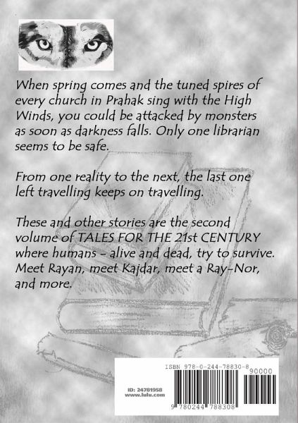 When spring comes and the tuned spires of every church in Prahak sing with the High Winds, you could be attacked by monsters as soon as darkness falls. Only one librarian seems to be safe. From one Reality to the next, the last one left travelling keeps on travelling. These and other stories are the second volume of TALES FOR THE 21st CENTURY where humans -alive and dead, try to survive. Meet Rayan, meet Kajdar, meet a Ray-Nor, and more.