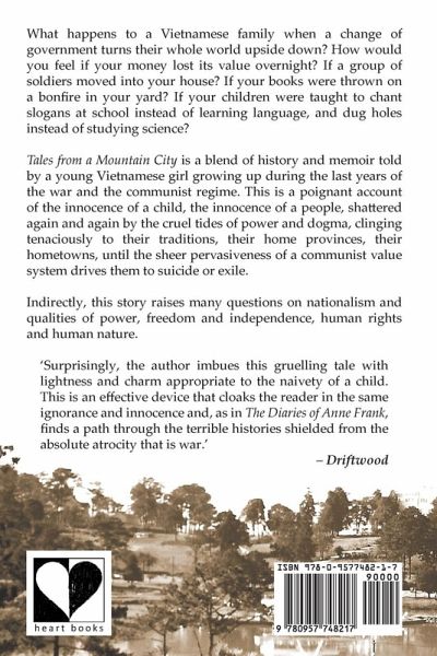 Tales from a Mountain City is a blend of history and memoir told by a young Vietnamese girl growing up during the last years of the war and the communist regime.This is a poignant account of the innocence of a child, the innocence of a people, shattered again and again by the cruel tides of power and dogma, clinging tenaciously to their traditions, their home provinces, their hometowns, until the sheer pervasiveness of a communist value system drives them to suicide or exile. Indirectly, this story raises many questions on nationalism and qualities of power, freedom and independence, human rights and human nature. 'Surprisingly, the author imbues this gruelling tale with lightness and charm appropriate to the naivety of a child. This is an effective device that cloaks the reader in the same ignorance and innocence and, as in The Diaries of Anne Frank, finds a path through the terrible histories shielded from the absolute atrocities that is war.' Driftwood