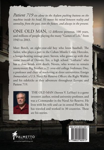 Patient 719 sits alone in the Asylum pushing buttons on the machine inside his head. He moves his mind between reality and unreality, from the past, into the future, and always in the present. ONE OLD MAN, 12 different personas, 100 years, and millions of people playing the many "Games of Life," from 1943 to 2043. Meet Butch, an eight-year-old boy who loves baseball; The Sailor, who plays a part in the Cuban Missile Crisis; Hercules, a bongo-beating teenage poet; Steven, who grows up with that name instead of Dennis; Tex, a high school "Lothario" who has a close brush with death; Nevets, who wishes to remain anonymous; Big Brother, a 21-year-old college freshman; Doc, a professor and chair of marketing at three universities; Ensign Immaculaté, a U.S. Navy Air Reserve Officer; the Right Wabbit and his sidekicks as they adventure throughout Europe; and Patient 719. Recipient of 2024 President's Book Awards Silver Medal Winner (Florida Authors and Publishers Association)