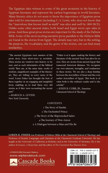 The Egyptian tales witness to some of the great moments in the history of Egyptian literature and represent the earliest beginnings in world literature. Many literary critics do not seem to know the importance of Egyptian prose tales told for entertainment (including C. S. Lewis, who does not know that the ""marvelous that knows itself as myth"" was alive and well by 1800 BCE). Unlike some other ancient states, both Israel and Egypt wrote epic tales in prose. And these great prose stories are important for the study of the Hebrew Bible. Some of the most exciting narrative prose parallels to the Hebrew Bible are found in the stories from Egypt. The details may vary, but in the setting, the purpose, the vocabulary, and the genre of the stories, one can find many similarities. Contents 1 The Story of Sinuhe: A Wanderer on the Earth 2 The Enchanted Prince 3 The Story of the Shipwrecked Sailor 4 The Journey of Wen-Amon 5 A Dialogue between a Man and His Ba