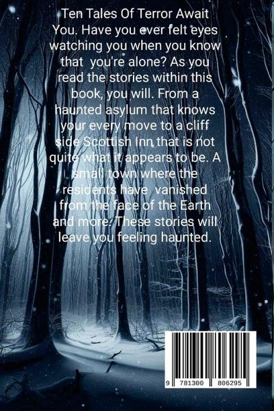 Within this book are ten dark and eerie tales filled with thrills, chills, mystery and sheer terror. If you enjoy stories of horror, supernatural, or edge of your seat thrillers, then you will love this book.