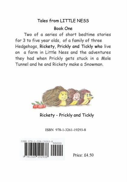 Two of a series of short Bedtime Stories for 3 to 5 year olds, of a family of three hedgehogs, Rickety, Prickly and Tickly, who live on a Farm in Little Ness and the adventures they had when Prickly gets stuck in a Mole Tunnel and he and Rickety make a Snowman
