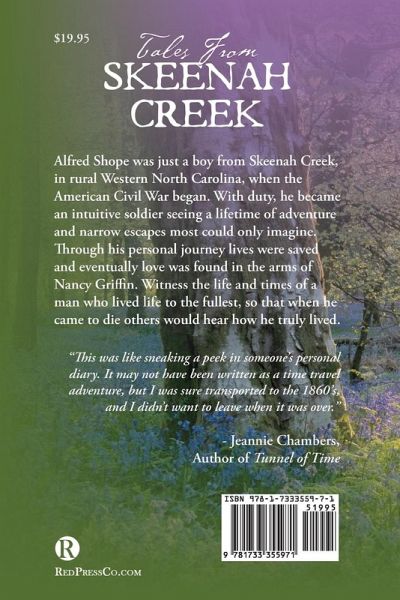 Alfred Shope was just a boy from Skeenah Creek, in rural Western North Carolina, when the American Civil War began. With duty, he became an intuitive soldier seeing a lifetime of adventure and narrow escapes most could only imagine. Through his personal journey lives were saved and eventually love was found in the arms of Nancy Griffin. Witness the life and times of a man who lived life to the fullest, so that when he came to die others would hear how he truly lived.