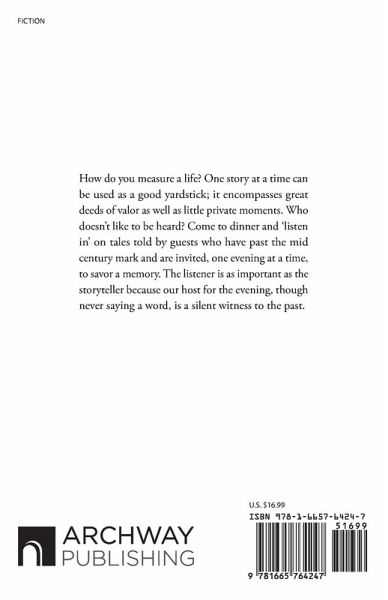 How do you measure a life? One story at a time can be used as a good yardstick; it encompasses great deeds of valor as well as little private moments. Who doesn't like to be heard? Come to dinner and 'listen in' on tales told by guests who have past the mid century mark and are invited, one evening at a time, to savor a memory. The listener is as important as the storyteller because our host for the evening, though never saying a word, is a silent witness to the past.