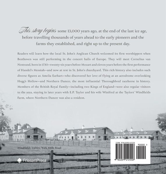 This story begins some 13,000 years ago, at the end of the last ice age, before travelling thousands of years ahead to the early pioneers and the farms they established, and right up to the present day. Readers will learn how the local St. John's Anglican Church welcomed its first worshippers when Beethoven was still performing in the concert halls of Europe. They will meet Cornelius van Nostrand, born in 1730-twenty-six years before Mozart and eleven years before the first performance of Handel's Messiah-and now at rest in St. John's churchyard. This rich history also includes such diverse figures as Amelia Earhart-who discovered her love of flying at an aerodrome overlooking Hogg's Hollow-and Northern Dancer, the most influential Thoroughbred racehorse in history. Members of the British Royal Family-including two Kings of England-were also regular visitors to the area, staying in later years with E.P. Taylor and his wife Winifred at the Taylors' Windfields Farm, where Northern Dancer was also a resident.
