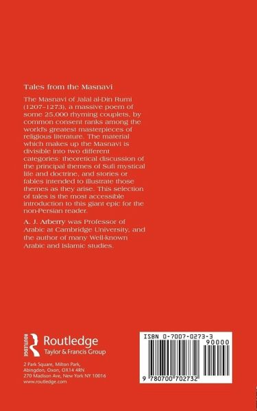 The Masnavi of Jalal al-Din Rumi (1207-1273), a massive poem of some 25,000 rhyming couplets, by common consent ranks among the world's greatest masterpieces of religious literature. The material which makes up the Masnavi is divisible into two different categories: theoretical discussion of the principal themes of Sufi mystical life and doctrine, and stories of fables intended to illustrarte those themes as they arise. This selection of tales is the most accessible introduction to this giant epic for the non-perisan reader.