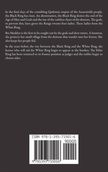In the final days of the crumbling Qarkisian empire of the Assassinidii people, the Black Ring has risen. An abomination, the Black Ring desires the end of the Age of Men and Gods and the rise of the ruthless chaos of the demons. The gods, to prevent this, have given the Renge twenty-four ladies. These ladies form the White Ring. Bes Meddyn is the first to be sought out by the gods and their tutors. A huntress, she protects her small village from the demons that wander into her forests. She also keeps her people fed. In the years before the war between the Black Ring and the White Ring, the heroes who will aid the White Ring begin to appear at the borders. The Elder Ring has been returned to its former position as judges and the nobles begin to choose sides.
