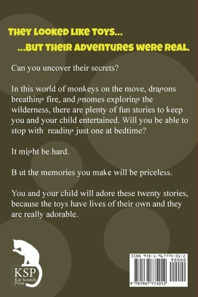 They looked like toys... ...but their adventures were real. Can you uncover their secrets? In this world of monkeys on the move, dragons breathing fire, and gnomes exploring the wilderness, there are plenty of fun stories to keep you and your child entertained. Will you be able to stop with just reading one at bedtime? It might hard. But the memories you make will be priceless. You and your child will adore these twenty stories, because the toys have lives of their own and they are really adorable. Get it now.