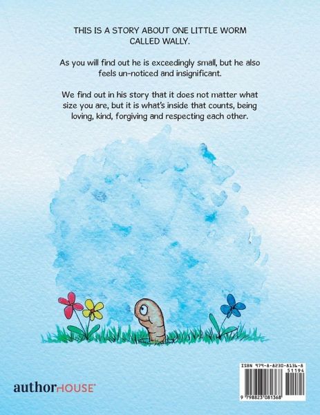 THIS IS A STORY ABOUT ONE LITTLE WORM CALLED WALLY. As you will find out he is exceedingly small, but he also feels un-noticed and insignificant. We find out in his story that it does not matter what size you are, but it is what's inside that counts, being loving, kind, forgiving and respecting each other.