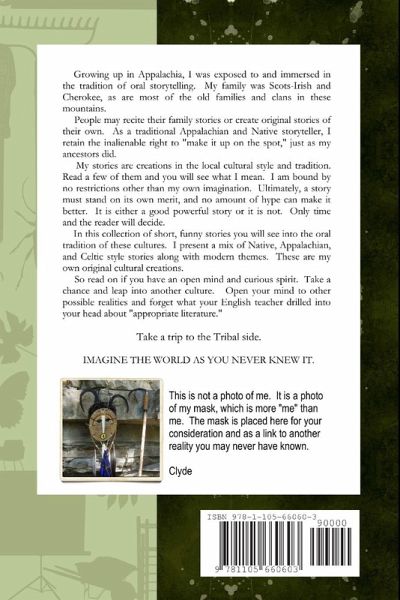 Original, funny Appalachian and Native American stories as told by Clyde Hollifield. Take a trip to the Tribal side, and explore realities you never knew. Learn what strange and unknown things lurk on the edges of our small World views. Experience Tribal humor at its best. IMAGINE THE WORLD AS YOU NEVER KNEW IT.