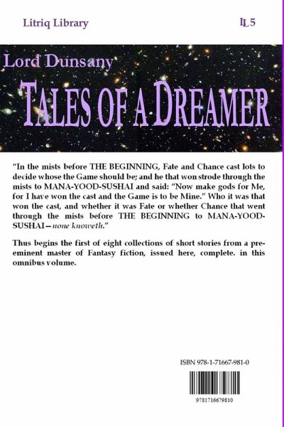 "In the mists before THE BEGINNING, Fate and Chance cast lots to decide whose the Game should be; and he that won strode through the mists to MANA-YOOD-SUSHAI and said: "Now make gods for Me, for I have won the cast and the Game is to be Mine." Who it was that won the cast, and whether it was Fate or whether Chance that went through the mists before THE BEGINNING to MANA-YOOD-SUSHAI-none knoweth." Thus begins the first of eight collections of short stories from a pre-eminent master of Fantasy fiction, issued here, complete. in this omnibus volume.