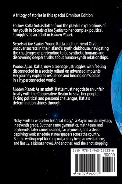 Three stories set on Arkhide, bundled together for the first time! These are character-driven space opera stories, more interested in people and ideas than action--though there is plenty of fun action! Almost no shooting or other mayhem. Follow Katla Sofiasdotter from the playful explorations of her youth in Secrets of the Synths to her complex political struggles as an adult in Hidden Planet. Secrets of the Synths: Young Katla and her friend Olve uncover secrets in their island's synth clubhouse, navigating the challenges of pretending to be synthetic humans and discovering deeper truths about human-synth relationships. Worlds Apart: Katla, now a teenager, struggles with feeling disconnected in a society reliant on advanced implants. Her journey explores resilience and finding one's place in a hyperconnected world. Hidden Planet: As an adult, Katla must negotiate an unfair treaty with the Cooperative Realm to save her people. Facing political and personal challenges, Katla's determination shines through. Part of the Cooperative Realm series of standalone stories