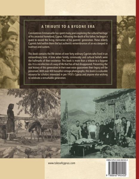 Constantinos Emmanuelle has spent many years exploring the cultural heritage of his ancestral homeland, Cyprus. Following the death of his father, he began a quest to record the living memories of his parents' generation. These elderly Cypriots held within them the last authentic remembrances of an era steeped in tradition and custom. This book contains the life stories of over forty ordinary Cypriots who lived in an extraordinary time. A time when family, community and cultural beliefs were the hallmarks of their existence. This book is more than a tribute to a bygone era. It is a recollection of a way of life that has all but disappeared. Presenting the oral history of this generation in their own voice guarantees their legacy will be preserved. With over 400 beautiful vintage photographs, this book is a valuable resource for scholars interested in pre-1950's Cyprus and anyone else wishing to celebrate a remarkable generation.