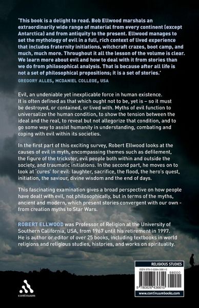 Evil, an undeniable yet inexplicable force in human existence, is often defined as that which ought not to be, yet is - so it must be destroyed, or contained, or lived with. Myths of evil function to universalize the human condition, to show the tension between the ideal and the real, to reveal but not allegorize that condition, and to go some way to assist humanity in understanding, combating, and coping with evil within its societies. Tales of Darkness explores the causes of evil in myth, encompassing themes such as defilement, the figure of the trickster, evil people both within and outside the society, and traumatic initiations. Robert Ellwood then looks at "cures" for evil: laughter, sacrifice, the flood, the hero's quest, initiation, the savior, divine wisdom and the end of days. This is a fascinating examination of how people have dealt with evil, not philosophically but in terms of the myths, ancient and modern, which present stories convergent with our own, from creation myths to Star Wars.