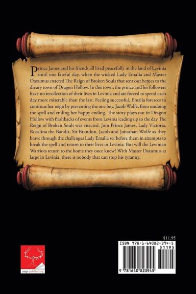 Prince James and his friends all lived peacefully in the land of Levinia until one fateful day, when the wicked Lady Emalia and Master Daxumus enacted The Reign of Broken Souls that sent our heroes to the dreary town of Dragon Hollow. In this town, the prince and his followers have no recollection of their lives in Levinia and are forced to spend each day more miserable than the last. Feeling successful, Emalia foresees to continue her reign by preventing the one boy, Jacob Wolfe, from undoing the spell and ending her happy ending. The story plays out in Dragon Hollow with flashbacks of events from Levinia leading up to the day The Reign of Broken Souls was enacted. Join Prince James, Lady Victoria, Rosalina the Bandit, Sir Brandon, Jacob and Jonathan Wolfe as they brave through the challenges Lady Emalia set before them in attempts to break the spell and return to their lives in Levinia. But will the Levinian Warriors return to the home they once knew? With Master Daxumus at large in Levinia, there is nobody that can stop his tyranny.