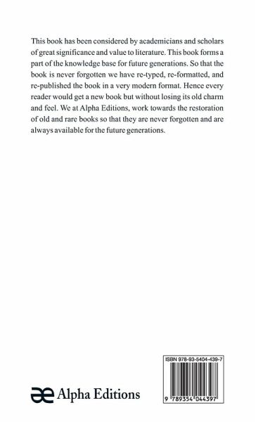 This book has been considered by academicians and scholars of great significance and value to literature. This book forms a part of the knowledge base for future generations. So that the book is never forgotten we have re-typed, re-formatted, and re-published the book in a very modern format. Hence every reader would get a new book but without losing its old charm and feel. We at Alpha Editions, work towards the restoration of old and rare books so that they are never forgotten and are always available for the future generations.