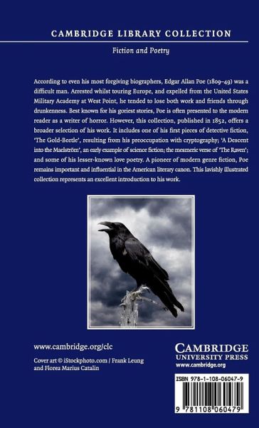 According to even his most forgiving biographers, Edgar Allan Poe (1809-49) was a difficult man. Arrested whilst touring Europe, and expelled from the United States Military Academy at West Point, he tended to lose both work and friends through drunkenness. Best known for his goriest stories, Poe is often presented to the modern reader as a writer of horror. However, this collection, published in 1852, offers a broader selection of his work. It includes one of his first pieces of detective fiction, 'The Gold-Beetle', resulting from his preoccupation with cryptography; 'A Descent into the Maelström', an early example of science fiction; the mesmeric verse of 'The Raven'; and some of his lesser-known love poetry. A pioneer of modern genre fiction, Poe remains important and influential in the American literary canon. This lavishly illustrated collection represents an excellent introduction to his work.