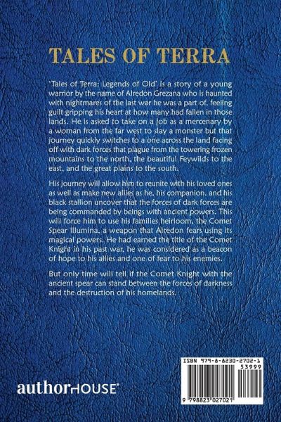 'Tales of Terra: Legends of Old' is a story of a young warrior by the name of Alredon Grezana who is haunted with nightmares of the last war he was a part of, feeling guilt gripping his heart at how many had fallen in those lands. He is asked to take on a job as a mercenary by a woman from the far west to slay a monster but that journey quickly switches to a one across the land facing off with dark forces that plague from the towering frozen mountains to the north, the beautiful Feywilds to the east, and the great plains to the south. His journey will allow him to reunite with his loved ones as well as make new allies as he, his companion, and his black stallion uncover that the forces of dark forces are being commanded by beings with ancient powers. This will force him to use his families heirloom, the Comet Spear Illumina, a weapon that Alredon fears using its magical powers. He had earned the title of the Comet Knight in his past war, he was considered as a beacon of hope to his allies and one of fear to his enemies. But only time will tell if the Comet Knight with the ancient spear can stand between the forces of darkness and the destruction of his homelands.