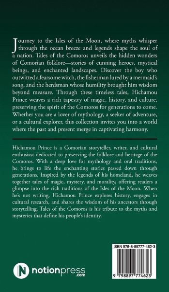 Journey to the Isles of the Moon, where myths whisper through the ocean breeze and legends shape the soul of a nation. Tales of the Comoros unveils the hidden wonders of Comorian folklore-stories of cunning heroes, mystical beings, and enchanted landscapes. Discover the boy who outwitted a fearsome witch, the fisherman lured by a mermaid's song, and the herdsman whose humility brought him wisdom beyond measure. Through these timeless tales, Hichamou Prince weaves a rich tapestry of magic, history, and culture, preserving the spirit of the Comoros for generations to come. Whether you are a lover of mythology, a seeker of adventure, or a cultural explorer, this collection invites you into a world where the past and present merge in captivating harmony.